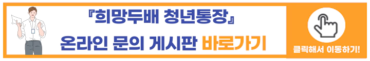 ② 희망두배 청년통장 홈페이지 <문의> 게시판 (아래 바로가기 링크 클릭 시 이동)