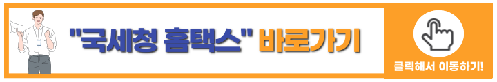 국세청 홈택스는 국세청 홈택스 사이트 접속 후(아래 바로가기 이미지 클릭) 아래와 같은 절차로 신청하시면 됩니다. 홈택스는 메뉴가 많아서 복잡해 보이지만 안내에 따라 차분히 잘 따라가시면 어렵지 않게 신청이 가능합니다.